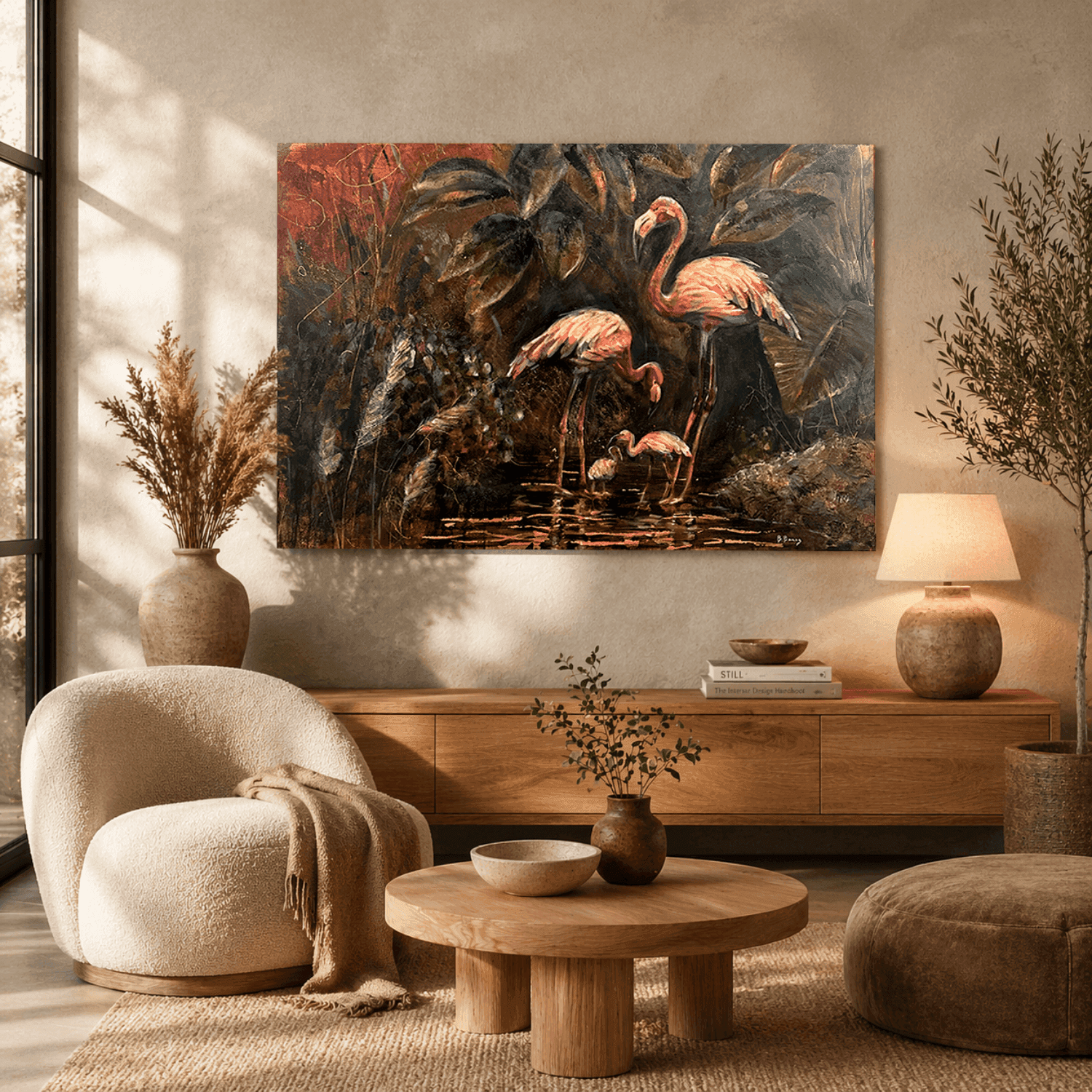 From a Feng Shui perspective this piece sits beautifully in the south area of a home or room. The fire-toned palette naturally supports that direction bringing in energy, visibility and a vibrant sense of life.