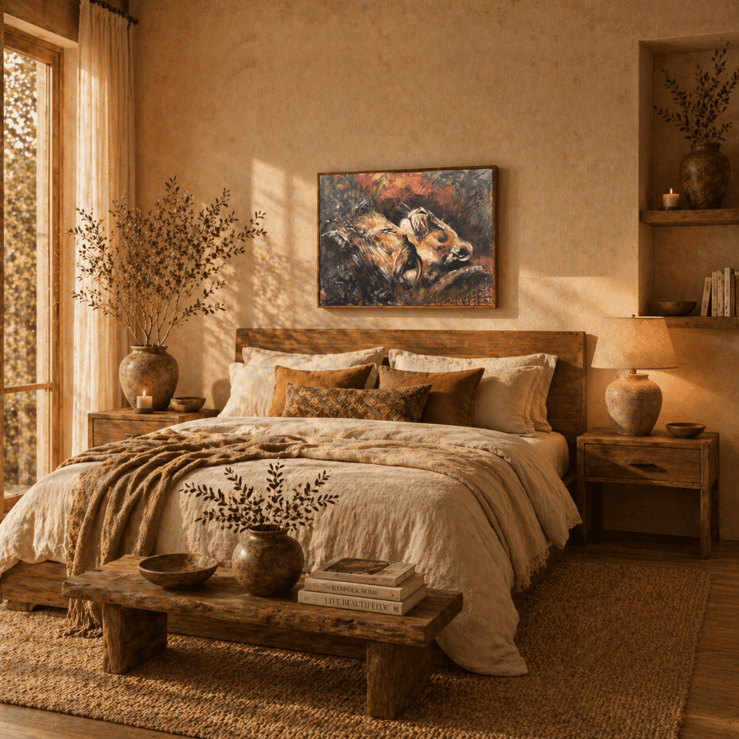 The piece carries a distinctly intimate energy - one that belongs in spaces where connection is felt not performed. A bedroom, a private corner, a place where presence matters more than appearance.